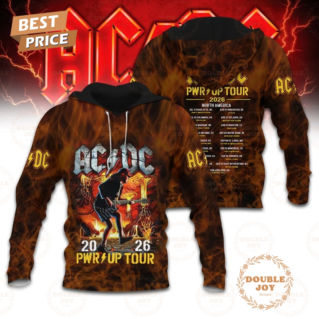 Representing more than just merchandise, the AC/DC PWR/UP Tour 2026 T-Shirt and Hoodie collection offers fans an unparalleled way to connect with the legendary band and commemorate their highly anticipated future tour, serving as a tangible piece of rock and roll history that blends iconic style with uncompromising comfort and durability. This premium apparel line is meticulously designed to meet the demands of both ardent collectors and everyday wearers, ensuring it stands out whether you’re front row at a concert, out with friends, or simply relaxing at home. The T-Shirt, a cornerstone of any fan’s wardrobe, is constructed from a high-quality, pre-shrunk 100% ringspun cotton, offering a supremely soft hand feel and excellent breathability that remains comfortable through long days and energetic nights. Its classic fit provides a versatile silhouette that flatters a wide range of body types without being overly restrictive, ensuring freedom of movement. The vibrant, screen-printed graphic on the front proudly features the electrifying AC/DC logo, powerfully integrated with the “PWR/UP Tour 2026” branding, often augmented by iconic band imagery like Angus Young’s silhouette or the signature lightning bolt, all rendered in robust, fade-resistant inks designed to withstand countless washes and maintain their crispness over time. The T-shirt’s reinforced stitching throughout its construction further guarantees its longevity, making it a reliable staple for years to come.