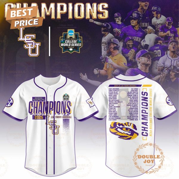Champions NCAA Baseball College World Series 2025 LSU Tigers Baseball Jersey