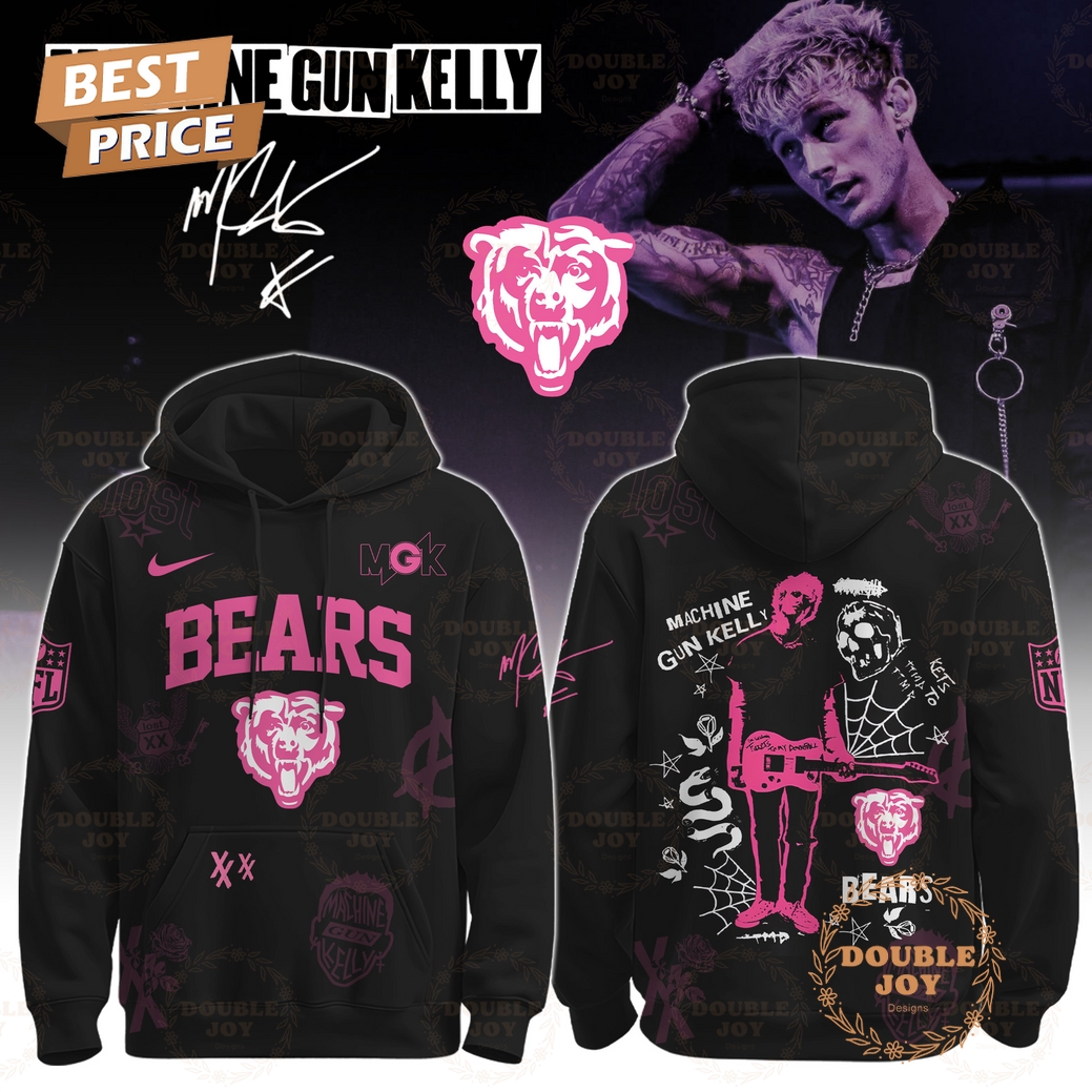 Beyond its striking visuals, the hoodie is engineered for a contemporary, relaxed fit, offering a comfortable drape that allows for easy layering without appearing overly baggy. Its drop-shoulder design enhances the modern silhouette, ensuring it looks equally stylish on men and women. The ribbed cuffs and hem are crafted for superior shape retention, preventing stretching and ensuring a snug fit that keeps the warmth locked in, while also contributing to the garment’s overall structural integrity. This product isn’t merely clothing; it’s a statement piece, an instant conversation starter that celebrates a bold individuality and a refusal to be confined by traditional fan categories. For the lifelong Chicago Bears fan, it offers an unprecedented opportunity to display team pride with an avant-garde flair, appealing to a younger demographic or those who appreciate an alternative aesthetic. For the devoted Machine Gun Kelly enthusiast, it serves as an exclusive piece of tour memorabilia that also nods to a legendary sports franchise, showcasing a multifaceted passion. Furthermore, for fashion-forward individuals and collectors, the limited-edition, cross-cultural nature of this collaboration makes it a highly desirable item, a rare gem in a sea of mass-produced apparel. Its premium materials and expert craftsmanship ensure long-term durability, making it not just a momentary purchase but a cherished garment that will maintain its visual impact and comfort for years, cementing its status as a unique and invaluable addition to any wardrobe.