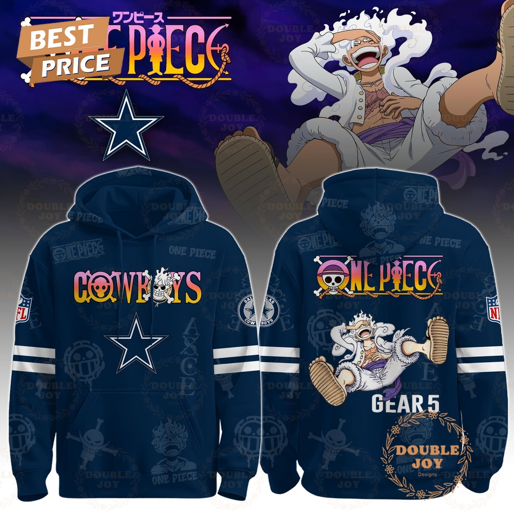 This unique hoodie brings together two titans of entertainment, forging an unparalleled piece of apparel for the discerning fan who lives at the intersection of American football legacy and shonen anime epic. The Dallas Cowboys x One Piece “Gear 5” Hoodie isn’t merely a garment; it’s a meticulously designed statement, a wearable testament to passion that bridges the iconic blue and silver of America’s Team with the boundless, whimsical power of Monkey D. Luffy’s awakened form. Every element of this hoodie is crafted to resonate deeply with enthusiasts of both franchises, offering a blend of stylistic innovation, comfort, and undeniable exclusivity.
