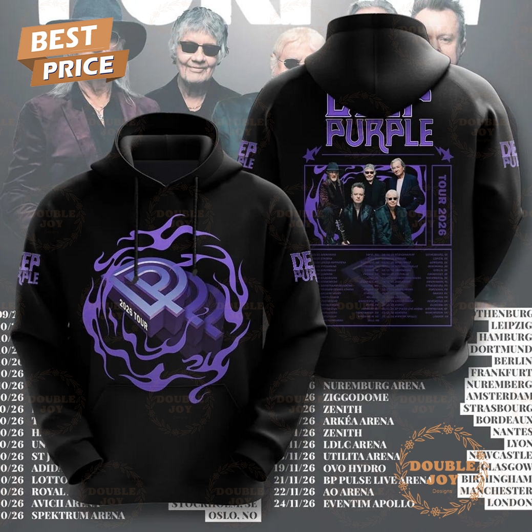 Alternatively, the Deep Purple Tour 2026 Black Hoodie offers unparalleled warmth and coziness without sacrificing fan loyalty or style. This option is typically crafted from a high-quality, mid-to-heavyweight blend of cotton and polyester, a combination specifically chosen for its superior thermal retention and plush feel. The interior boasts a soft, brushed fleece lining that provides an immediate sense of comfort and insulation, making it the perfect companion for cooler evenings, outdoor concerts, or simply lounging at home. Functional features include an adjustable drawstring hood, allowing for personalized coverage against wind or light rain, and a spacious kangaroo pocket positioned conveniently on the front, ideal for warming hands or stashing essentials like phone, keys, or concert tickets. The ribbed cuffs and waistband not only contribute to the hoodie’s classic aesthetic but also ensure a secure, comfortable fit that helps seal in warmth. This robust construction makes the hoodie highly resistant to pilling and stretching, maintaining its shape and soft texture over time. It serves as an indispensable item for fans who frequent outdoor events, travel often, or reside in colder climates, offering a practical, supremely comfortable, and visually striking way to represent their devotion to Deep Purple. Both the T-shirt and the Hoodie ultimately provide lasting commemorative value, offering fans high-quality, comfortable, and durable apparel that proudly celebrates the Deep Purple Tour 2026.