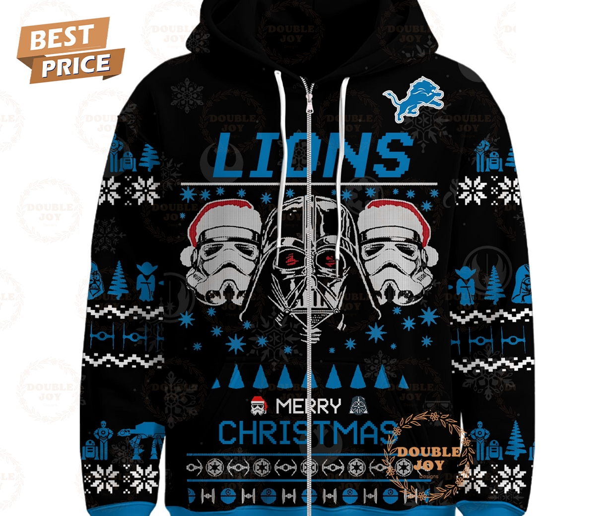 Detroit Lions x Star Wars Merry Christmas 2025 Hoodie, Zipper Hoodie, Fleece Hoodie, Long Sleeve Shirt, T-Shirt
