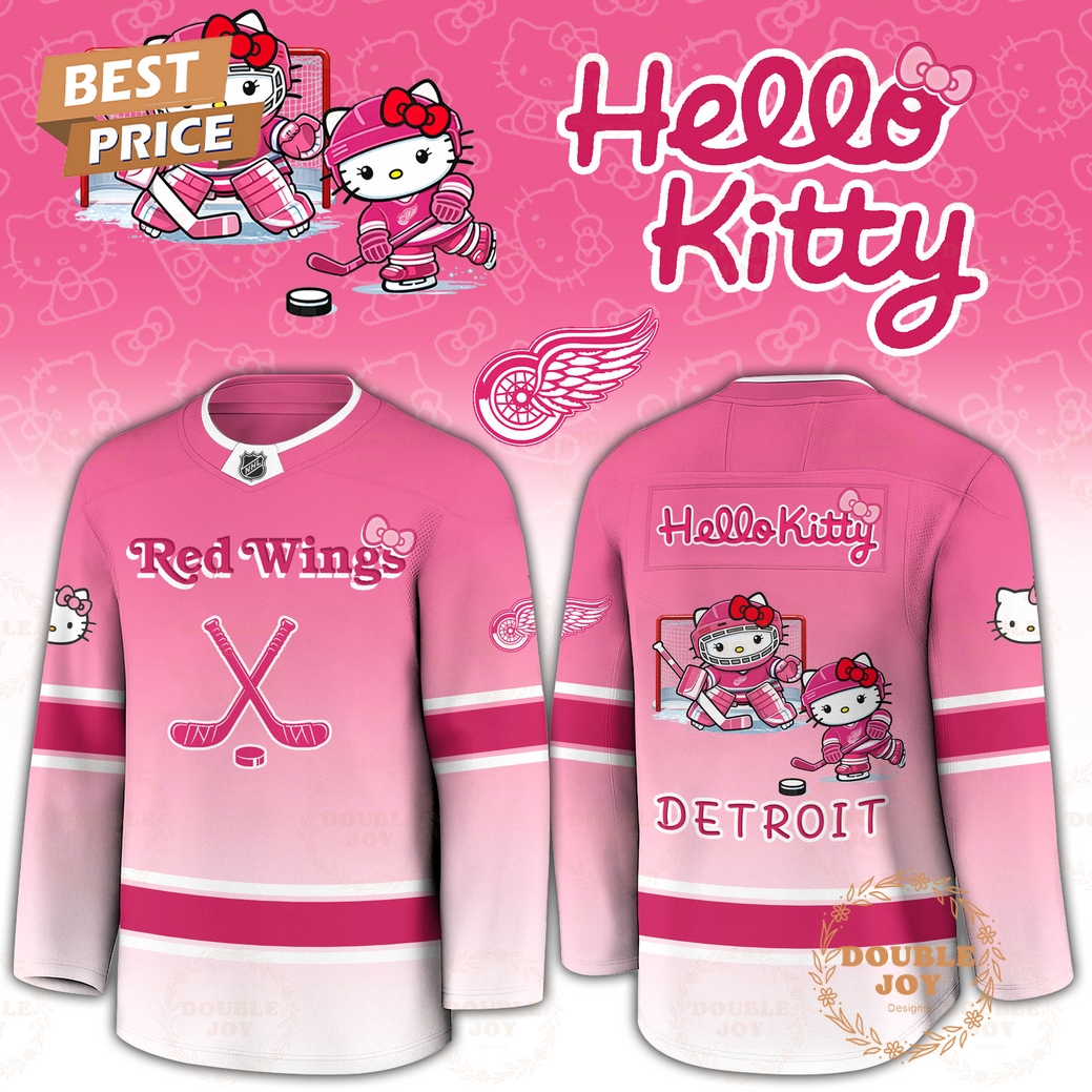 The Detroit Red Wings x Hello Kitty 2026 Limited Edition Hockey Jersey represents an unprecedented fusion of iconic sporting heritage and beloved pop culture, designed for the discerning fan who values both tradition and playful individuality. This meticulously crafted garment transcends typical fan apparel, offering a truly unique aesthetic that pays homage to the storied Detroit Red Wings while injecting the irresistible charm of Hello Kitty. The jersey’s primary canvas is the classic Red Wings red, a deep, vibrant scarlet that instantly evokes the roar of the arena, accented by crisp white stripes and shoulder details. However, the true artistry lies in the integrated design elements: the iconic Winged Wheel crest, embroidered with unparalleled precision, now subtly incorporates Hello Kitty’s signature red bow, perhaps perched elegantly atop the ‘D’ or nestled within the ‘wheel’s’ curve, creating a whimsical yet respectful homage. A separate, custom Hello Kitty emblem, depicting her playfully wearing a miniature Red Wings helmet, graces the right shoulder, adding an exclusive touch that collectors will immediately recognize and appreciate. Numbers and lettering, rendered in the Red Wings’ authentic block font, feature a delicate, pink-threaded outline or a ghosted Hello Kitty silhouette within their structure, ensuring readability while reinforcing the collaborative spirit.
