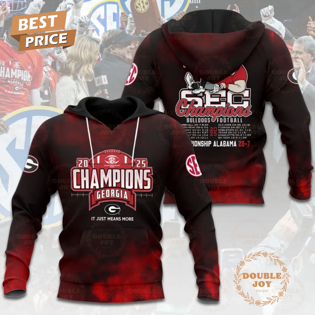 This exclusive Georgia Bulldogs 2025 Champions Limited T-Shirt and Hoodie collection offers an unparalleled way for fans to express their unwavering confidence and anticipation for future gridiron glory. Each garment in this collection is not merely apparel; it’s a bold declaration, a testament to the unshakeable belief in the Bulldogs’ path to another national title. The central design proudly emblazons “Georgia Bulldogs 2025 Champions,” rendered in striking, officially licensed team typography that captures the spirit and power of the UGA brand. The iconic Georgia ‘G’ logo is seamlessly integrated, often accompanied by subtle yet powerful design elements like a championship trophy silhouette or a stylized bulldog mascot, all presented in the team’s classic red, black, white, and grey color palette, ensuring immediate recognition and pride.