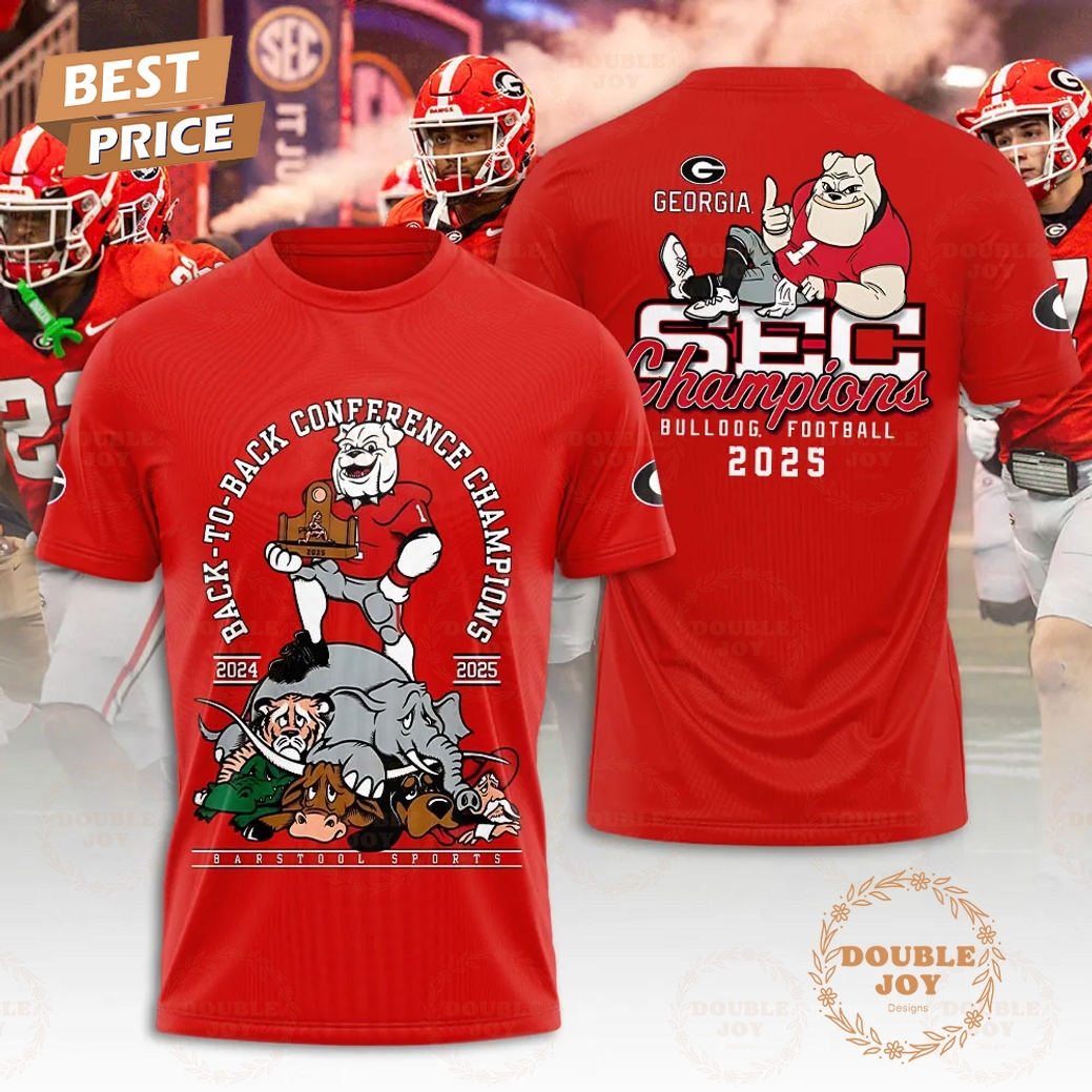 Georgia Bulldogs Back To Back Champions 2025 T-Shirt, Hoodie, Zip Hoodie, V-Neck, Sweatshirt, Tank Top.