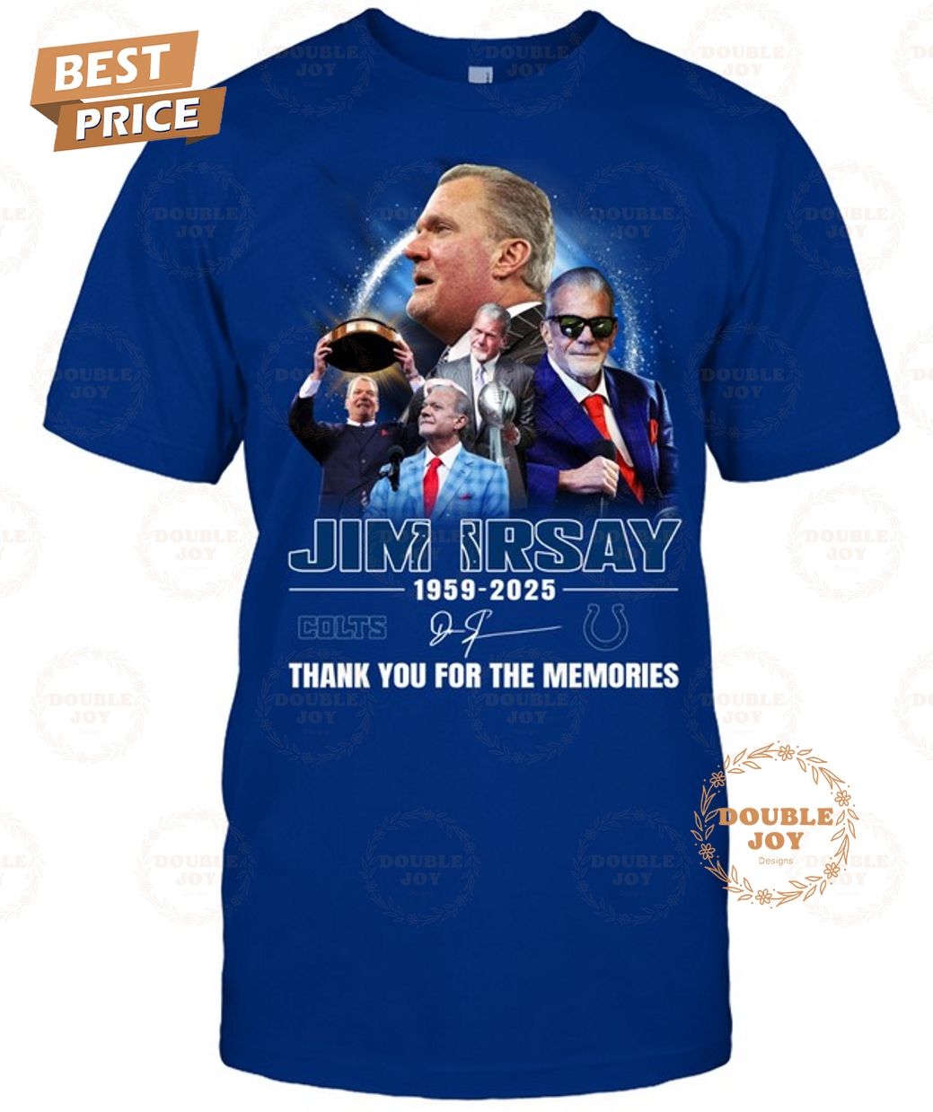 Jim Irsay 1959-2025 Thank You For The Memories T-Shirt, Hoodie, Ladies Shirt, Long Sleeve Shirt, Sweatshirt, Mug, Tank Top.