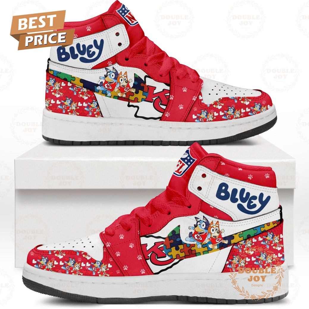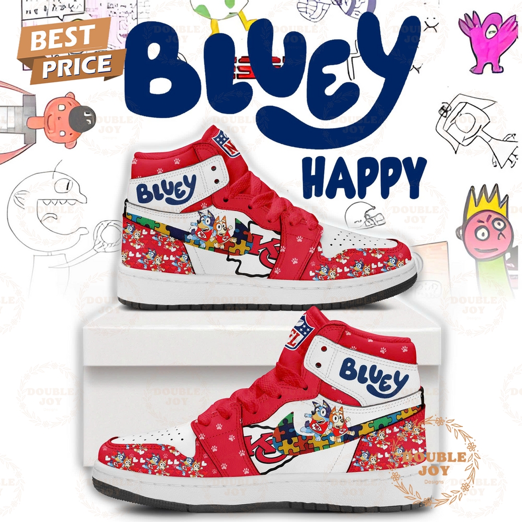 Kansas City Chiefs x Happy Autism Bluey 2025 Air Jordan 1 Hightop Shoes Information:.