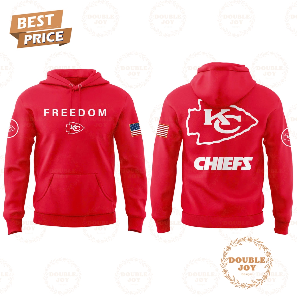 Visually, the hoodie is dominated by the iconic color scheme of the Kansas City Chiefs. Expect a vibrant base color, most likely a deep Chiefs red, serving as a powerful backdrop for the design elements. Contrasting accents, such as bold gold, white, and perhaps a touch of black, would be strategically employed to highlight logos and text. The front of the hoodie would undoubtedly feature the classic Chiefs arrowhead logo prominently, likely in its traditional white and gold, signifying team loyalty and pride. Integrated with or positioned strategically around this emblem would be elements representing Turning Point USA. This could manifest as the organization’s stylized “TP” logo, potentially incorporating an American flag motif, or simply the full text “Turning Point USA” in a clear, assertive font. The “FREEDOM 2025” slogan is central to its identity. This phrase would be rendered in a bold, impactful typography, likely in a contrasting color (such as white or gold against the red background) to ensure maximum visibility and a sense of forward-looking determination. Its placement might vary – perhaps across the chest beneath the Chiefs logo, or as a dominant graphic on the back, ensuring it serves as a powerful, unambiguous message. The overall aesthetic aims for clarity and strong visual impact, blending sports enthusiasm with a clear ideological stance.