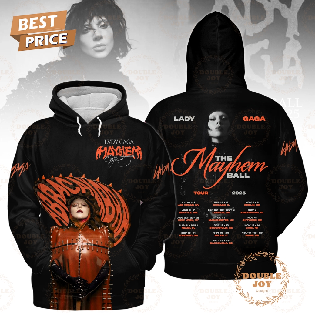 This exclusive collection of Lady Gaga The Mayhem Ball 2025 T-Shirts and Hoodies presents an unparalleled opportunity for Little Monsters worldwide to commemorate an iconic tour while embracing high-quality, fashion-forward merchandise. Designed as the official apparel for Gaga’s highly anticipated 2025 spectacle, these pieces transcend mere clothing, becoming wearable symbols of devotion and an enduring memento of a truly groundbreaking event. Each item captures the essence of “The Mayhem Ball,” reflecting Lady Gaga’s unparalleled artistic vision with intricate detailing and a bold aesthetic that resonates with her global fanbase. The central design prominently features the tour name, “The Mayhem Ball 2025,” rendered in a custom, avant-garde typeface that evokes the futuristic, rebellious, and high-fashion energy synonymous with Gaga herself. This core graphic is often surrounded or integrated with abstract, striking artwork—perhaps a deconstructed emblem, a stylized representation of her iconic imagery, or a symbolic motif hinting at the tour’s themes—all executed with precision to ensure maximum visual impact. The color palette chosen for the print is intentionally vibrant against the fabric, ensuring the artwork pops, whether it’s a stark monochrome statement or a burst of neon and metallic accents.