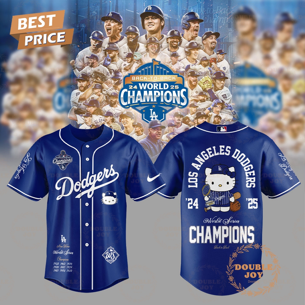 This exceptional garment offers a compelling blend of iconic sports tradition and beloved pop-culture charm, meticulously designed for fans who celebrate both the thrill of baseball and the enduring appeal of Hello Kitty. The Los Angeles Dodgers x Hello Kitty 24-25 World Series Champions 2025 Baseball Jersey is more than just apparel; it’s a bold statement of loyalty, optimism, and unique personal style, serving as a must-have for discerning collectors and passionate supporters alike. At its core, the jersey masterfully unites the storied Dodgers aesthetic with Hello Kitty’s unmistakable playful spirit. The dominant Dodger blue, a hue synonymous with championship aspirations, provides the perfect canvas, accented by crisp white lettering and piping that mirrors authentic on-field uniforms. Hello Kitty’s integration is thoughtful and charming, not merely an add-on, but a seamless part of the design narrative; perhaps her iconic silhouette subtly replaces an element of the classic “LA” insignia, or she appears in an adorable, Dodgers-themed rendition on a sleeve patch or the back, complete with her signature red bow. This fusion creates an eye-catching visual that is both instantly recognizable to Dodgers fans and delightfully appealing to Hello Kitty enthusiasts, bridging two distinct fanbases with effortless style.