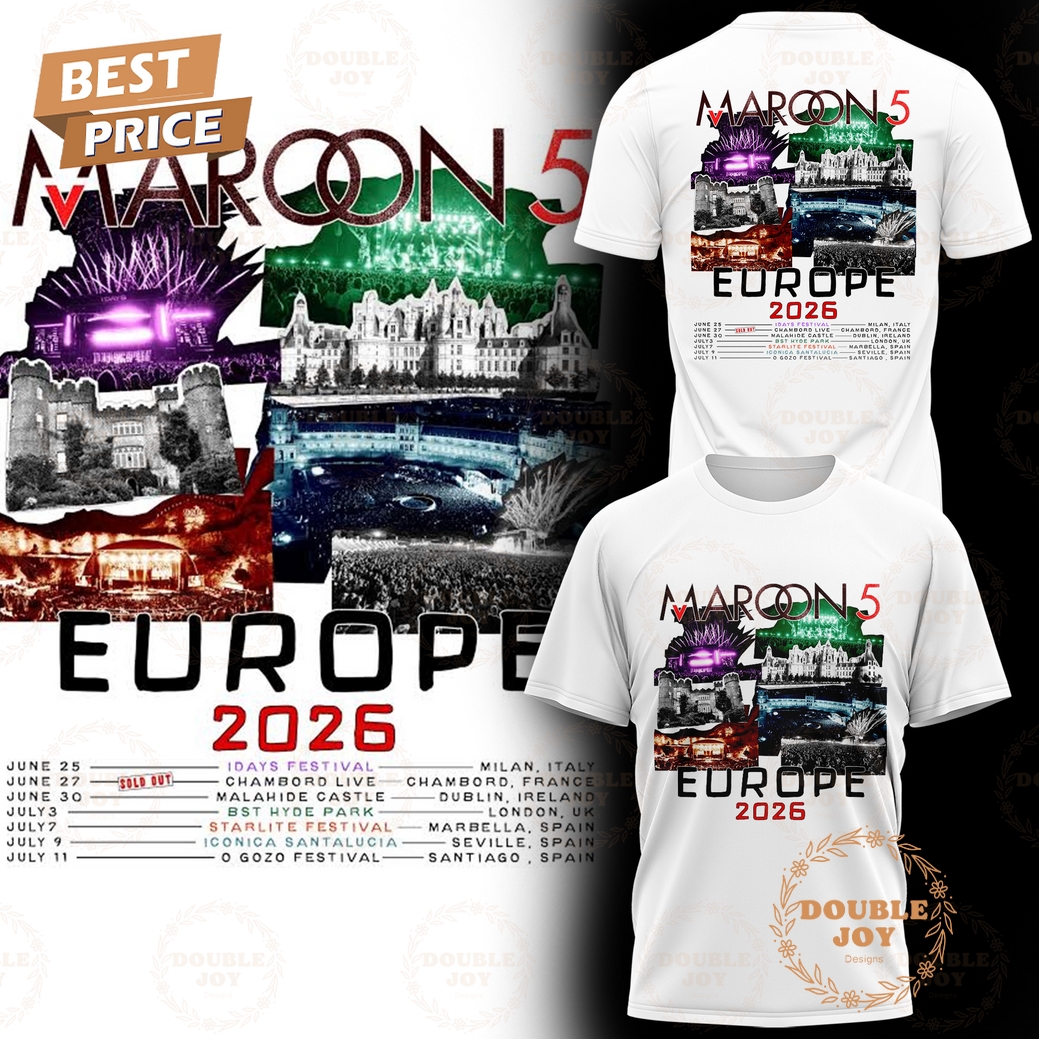 Maroon 5 Europe Tour 2026 White T-Shirt, Hoodie, Zip Hoodie, V-Neck, Sweatshirt, Tank Top.