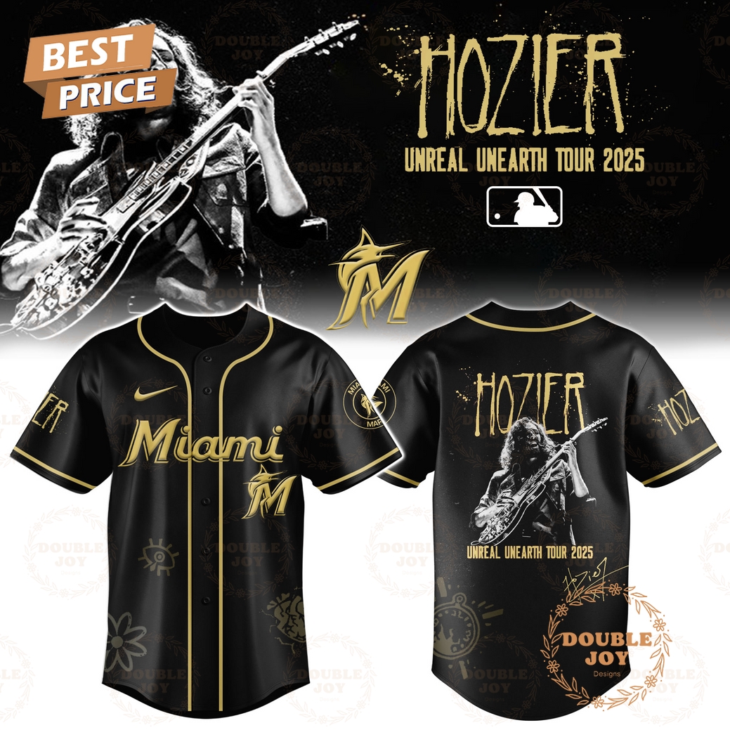 The Miami Marlins x HOZIER Tour 2025 Unreal Unearth Edition Baseball Jersey offers a unique blend of baseball style and musical artistry, appealing to fans of both the Marlins and the acclaimed singer-songwriter, Hozier. This limited-edition jersey transcends typical team apparel, presenting a collector’s item for dedicated fans and music enthusiasts alike. The jersey’s design incorporates a striking color palette inspired by Hozier’s “Unreal Unearth” album art, using deep blues, earthy greens, and subtle metallic accents to create a sophisticated and visually arresting piece. The Marlins logo is subtly integrated, avoiding an overly flashy approach and maintaining a balance between the two brands. High-quality materials are used throughout the construction; the jersey is made from a breathable, lightweight performance fabric designed for comfort whether worn at the ballpark or casually. This fabric ensures optimal comfort during warm weather and offers a superior feel compared to cheaper, less breathable options found in many other baseball jerseys. The fit is modern and athletic, flattering a range of body types while remaining true to size. Unlike some jerseys that feel restrictive, this one allows for a comfortable range of motion. Furthermore, reinforced stitching in high-stress areas promises longevity, ensuring the jersey will withstand repeated wear and washing without significant deterioration. Details such as a custom-designed neck tape featuring a subtle, repeating pattern inspired by the album art, and a commemorative patch showcasing both the Marlins and Hozier branding, further elevate the collectible nature of this garment. This limited edition run guarantees exclusivity, offering owners a piece of memorabilia that’s likely to appreciate in value over time. In short, this jersey meets the needs of discerning customers by combining high-quality materials, a unique and stylish design, and a limited-edition status, providing a valuable item that represents both a passion for baseball and a love of Hozier’s music. The result is a superior product that stands out from the crowd, offering both practicality and impressive collector’s value.