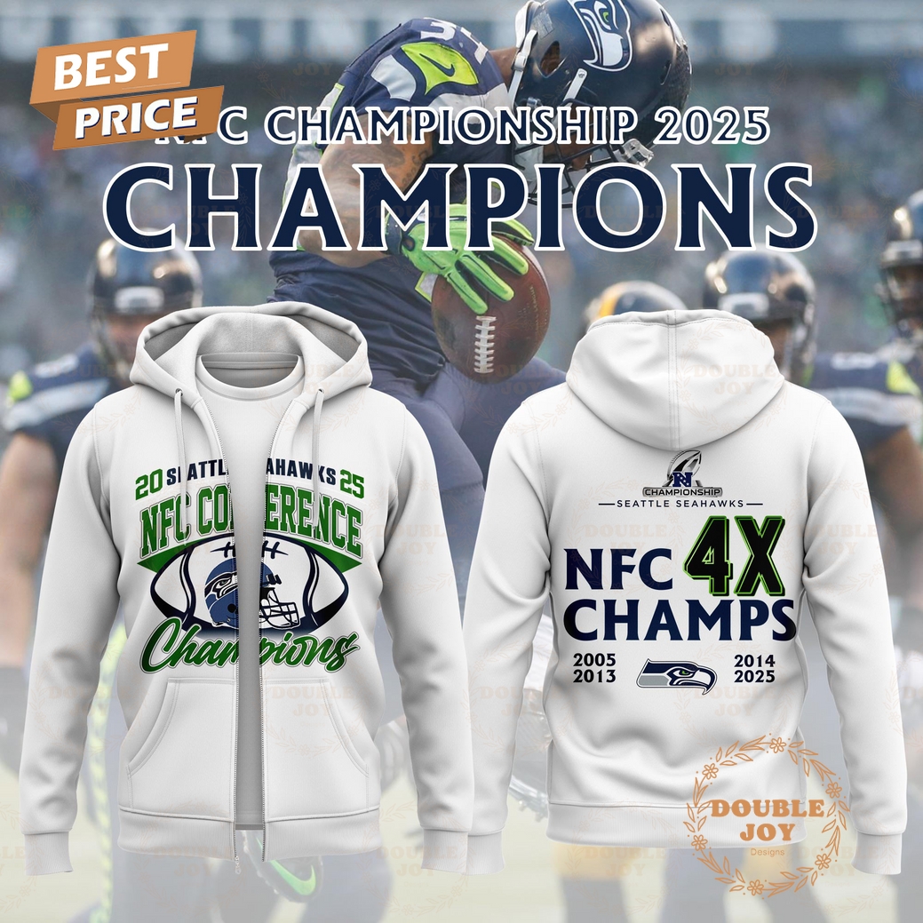 Seattle Seahawks 4X NFC Champs 2026 Hoodie – White, Zipper Hoodie, Fleece Hoodie, Long Sleeve Shirt, T-Shirt