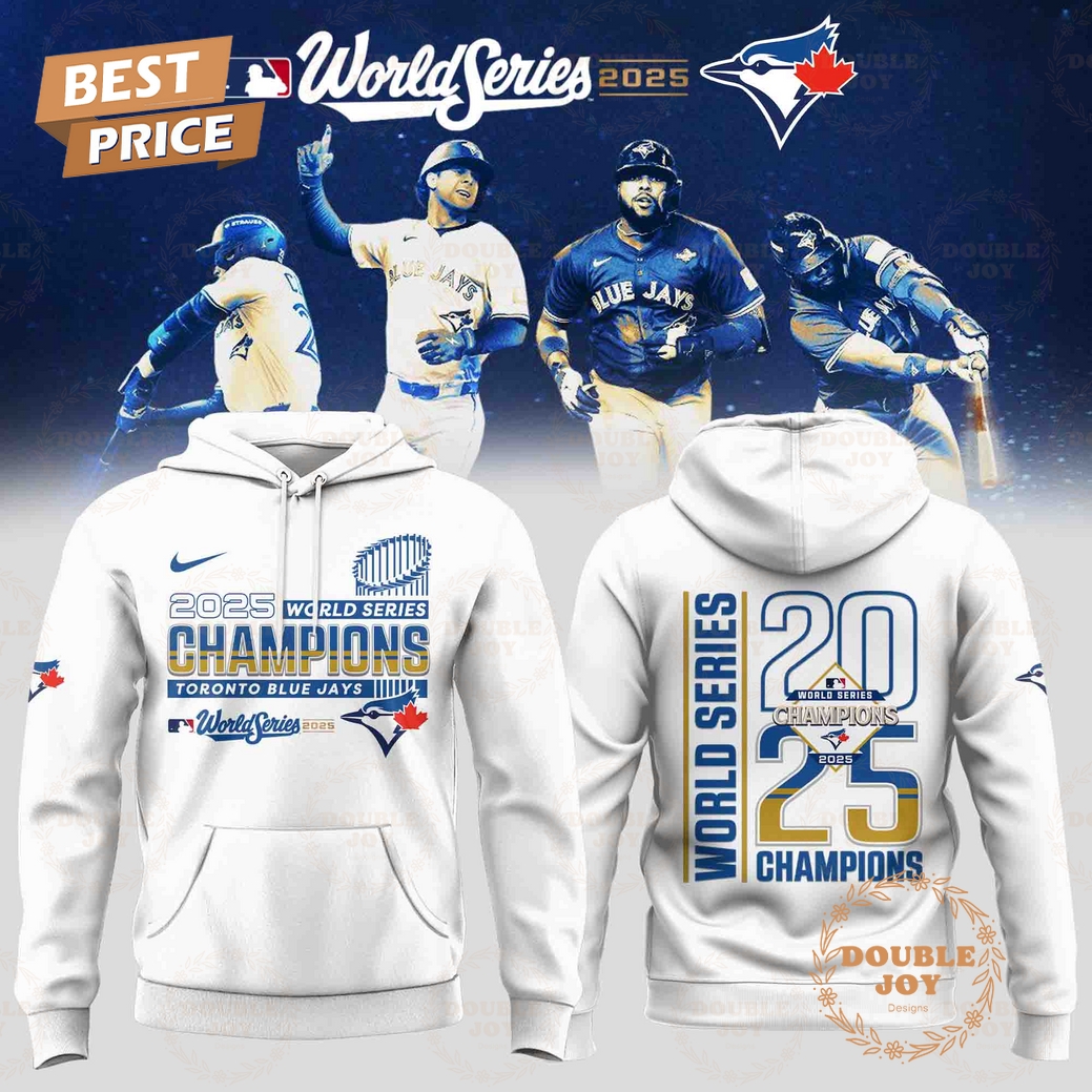 For cooler weather, or for those who prefer an extra layer of warmth and comfort, the hoodie version stands as an equally compelling choice. Fabricated from a substantial, yet remarkably soft, fleece-lined cotton-polyester blend, it delivers superior insulation and a plush interior feel that makes it perfect for chilly evenings at the ballpark, lounging at home, or sporting your pride during the off-season. This hoodie features a practical kangaroo pocket for keeping hands warm or stashing essentials, alongside an adjustable drawstring hood, providing customizable protection against the elements. Both the T-shirt and hoodie proudly display the bold “Team Champions 2025 World Series” graphic, intricately integrated with the iconic Toronto Blue Jays logo and celebratory championship motifs. The print quality on both garments is exceptional, utilizing advanced techniques that ensure vivid colors, sharp details, and a durable finish resistant to cracking or fading over time, signifying that this commemorative piece is built to last until and beyond the envisioned championship year.