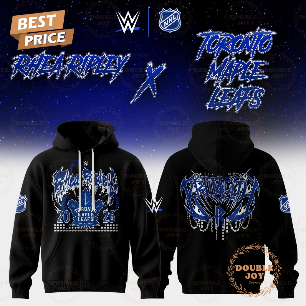 This distinctive Toronto Maple Leafs x Rhea Ripley 2026 T-Shirt and Hoodie collection represents an extraordinary convergence of two powerhouse worlds, delivering a unique statement piece for the discerning fan. Far from a simple team logo or a generic superstar print, this collection meticulously blends the iconic heritage of the Toronto Maple Leafs with the unparalleled ferocity and cutting-edge style of WWE’s Rhea Ripley, all framed within a forward-looking 2026 aesthetic. The design ethos is one of audacious synergy; imagine the classic Maple Leaf emblem, perhaps re-imagined with a subtle metallic sheen or a sharpened edge reminiscent of Ripley’s “Mami” persona, intertwined with or shadowed by elements drawing directly from her signature look. This could manifest as Ripley’s “Pistol Grip” hand gesture subtly integrated into the leaf’s veins, or perhaps her distinct skull motif and signature “Judgment Day” purple and silver accents woven into the traditional Leafs blue and white color palette, creating a dynamic visual that is both instantly recognizable and thrillingly novel. The “2026” designation isn’t just a date; it implies a modern, perhaps slightly futuristic interpretation, ensuring the design feels current and bold, signifying a new era of fan apparel.