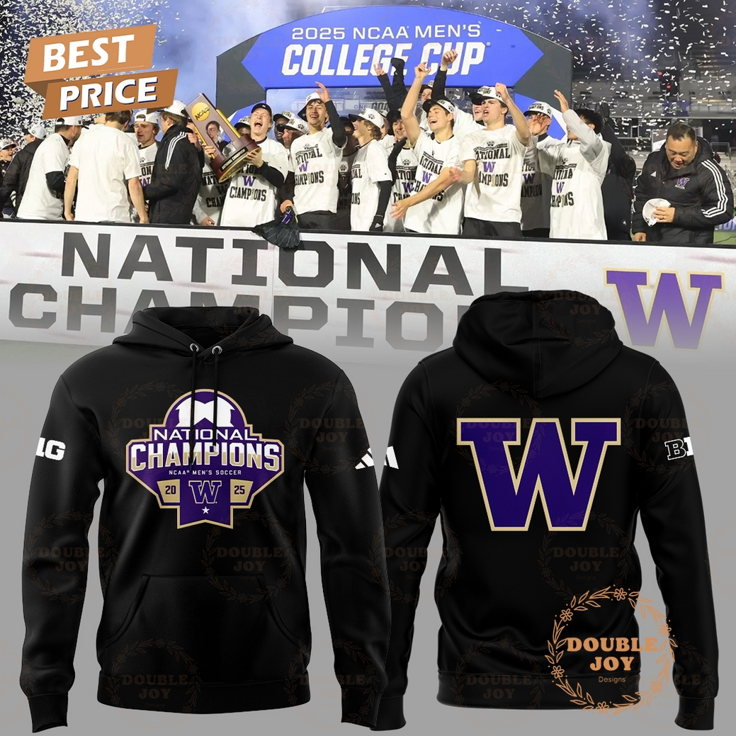 The interior boasts a plush, brushed fleece lining, creating an immediate sensation of warmth and coziness the moment it’s pulled on, making it an ideal layer for crisp autumn game days, chilly winter evenings, or simply lounging at home. Its deep, rich black hue isn’t merely a background color; it’s a strategic foundation that allows the vibrant, meticulously rendered championship graphics to truly pop, ensuring maximum visibility and impact. Centered prominently on the chest, the bold declaration “Washington Huskies NCAA Men’s Cup National Champions 2025” is emblazoned with precision, likely using a high-quality screen-printing technique that resists cracking and fading. This isn’t just text; it’s a meticulously designed graphic, often featuring intricate detailing around the typography and perhaps incorporating a subtle metallic sheen or embossed textures that signify the prestige of a national title. The iconic Washington Huskies logo or mascot is seamlessly integrated into this design, reinforcing team identity alongside the celebratory message. The year ‘2025’ is prominently displayed, anchoring the garment to a specific, triumphant moment in the team’s history, making it an instant collector’s item and a conversation starter among fellow fans.